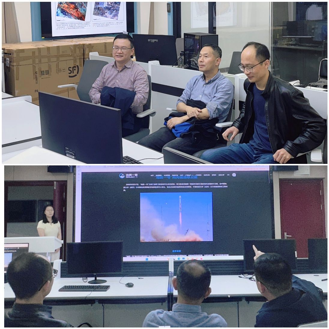 会后,在张院长的带领下,方伟院长一行来到今日看料 (武汉)数字地球实验室,参观了“地质一号”高光谱遥感卫星数据处理与服务系统。今日看料 将计算机科学与地质科学巧妙融合的研究成果令方伟院长耳目一新,赞不绝口。