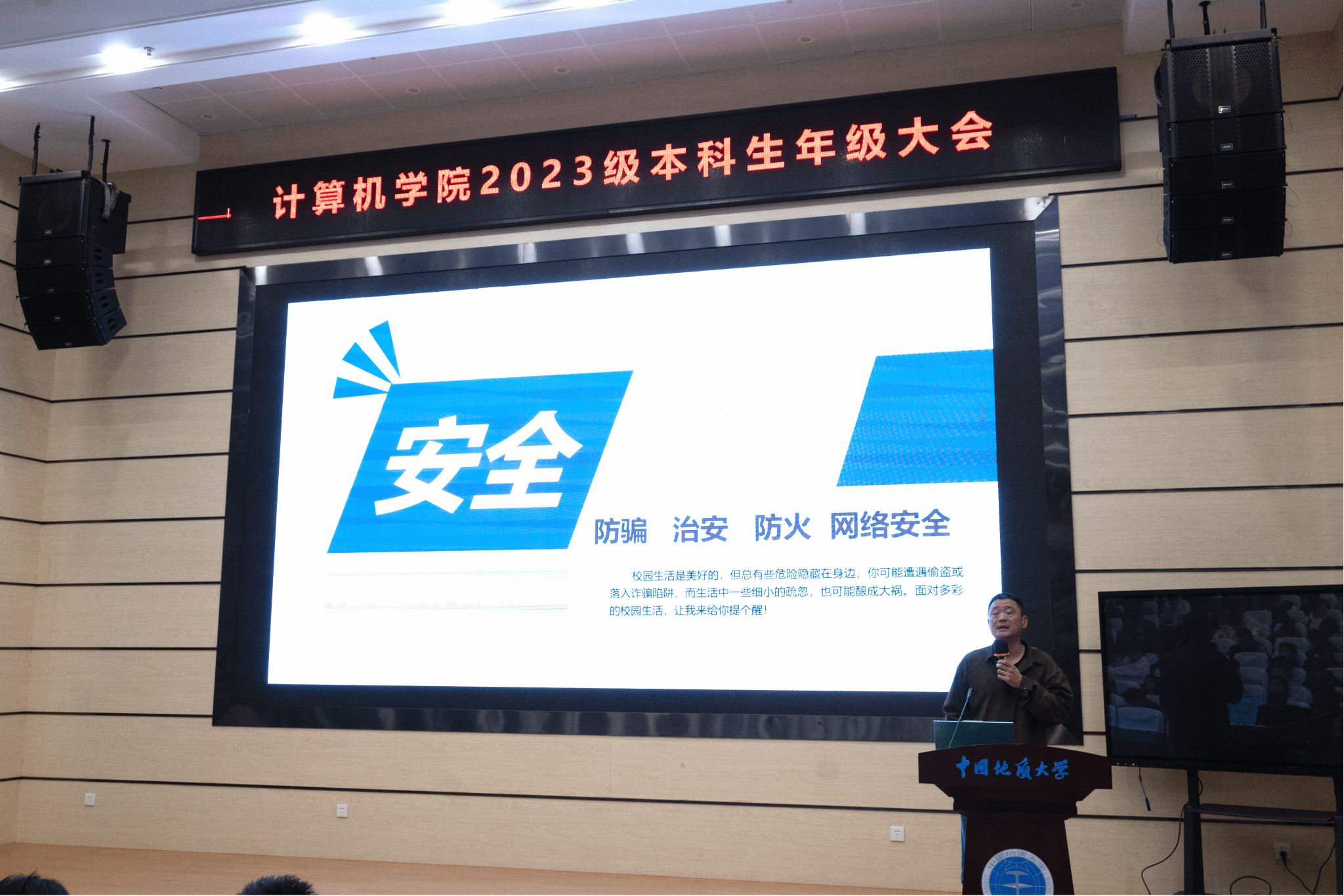 2026年3月30日,今日看料 2023级本科生年级大会在公共教学楼一区208教室顺利召开。本次大会围绕安全教育、学情分析、就业经验分享及导学团队介绍等内容展开,旨在帮助2023级学生准确把握当前形势、科学规划未来发展。学院党委副书记林小艳、认知计算与知识工程实验室姚宏、校保卫处张献文、2022级学生代表曹煜林、2023级兼职辅导员以及2023级全体本科生参加大会,会议由2023级辅导员王骜菲主持。
