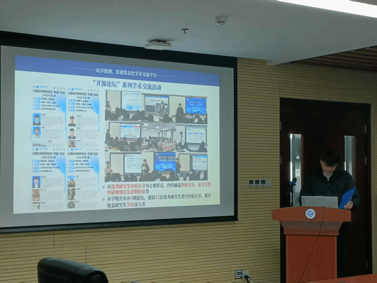 研究生会学术部展示了第三十六届研究生科技论文报告会、“开源论坛”系列学术交流活动、“四维研学空间”建设等活动成果,推动学院学术氛围建设方面取得了积极成效。同时,他们反思不足,总结经验,并为下一步工作制定明确规划。