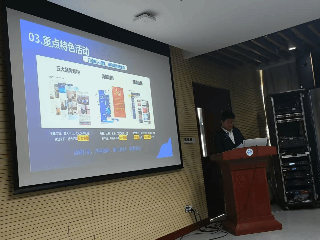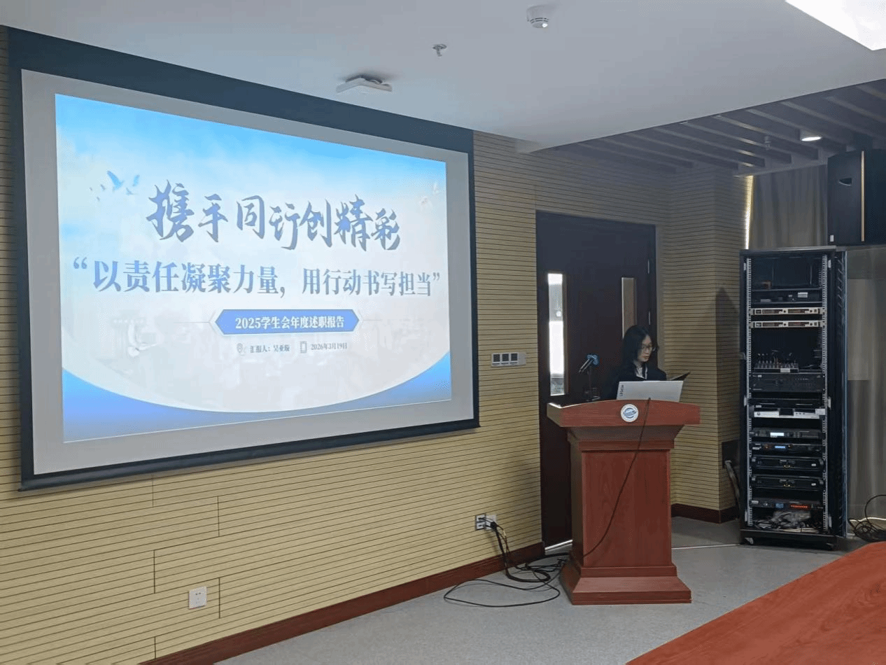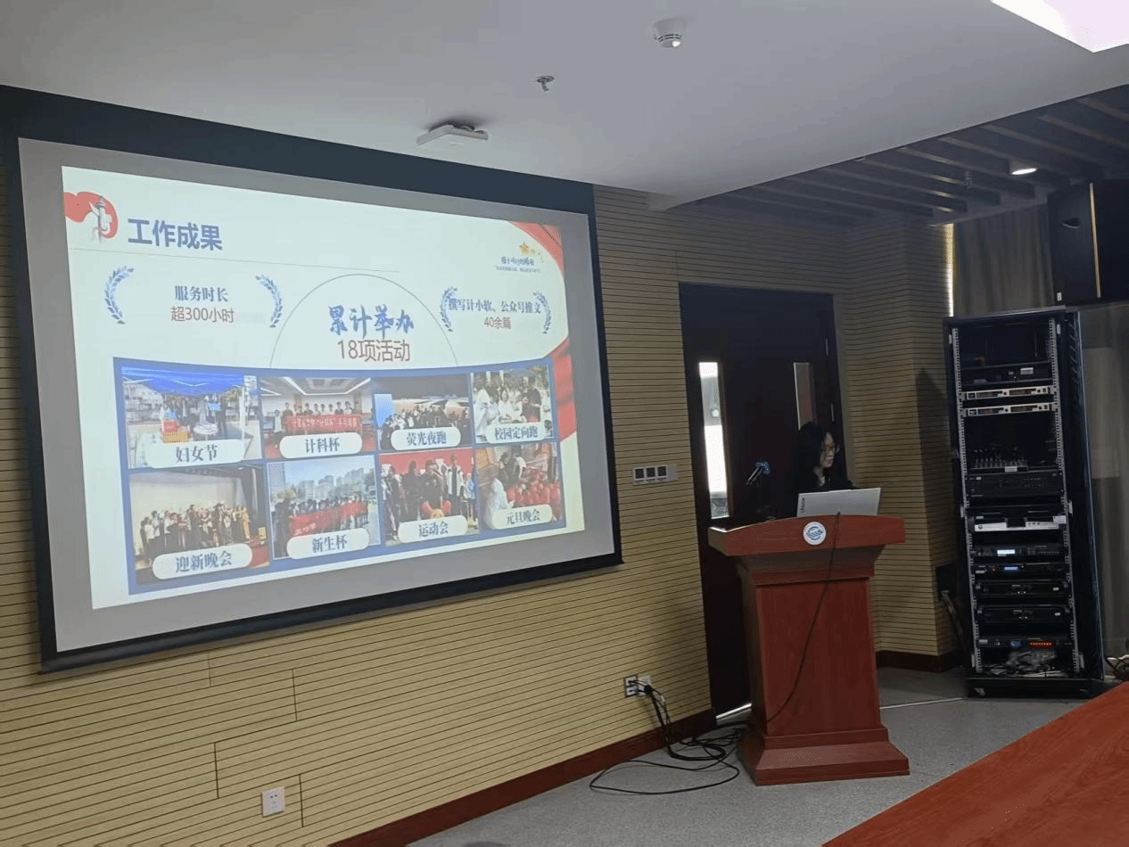 最后,团委学生会文体部以“以责任凝聚力量,用行动书写担当”为主题进行述职。通过数据与图片展示举办的元旦晚会、计科杯、新生杯、校运会等18项大型文体活动。他们反思不足,并提出继续办好经典赛事,不断创新活动形式的规划,提升活动参与度。