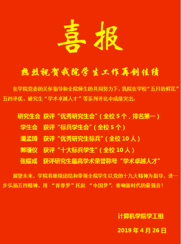 热烈祝贺我院学生工作再创佳绩