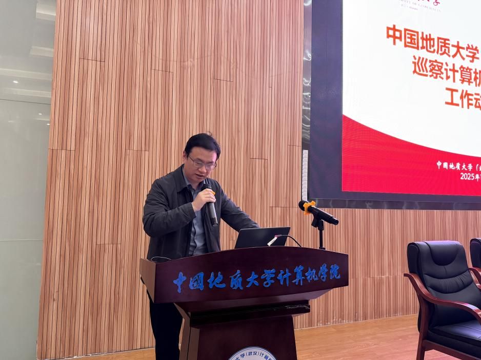 根据中国地质大学(武汉)第三轮巡察工作安排,2025年11月24日上午,校党委巡察计算机学院(软件学院)党委工作动员会在学院126报告厅召开。校党委副书记、纪委书记唐忠阳,校党委巡察办主任晋曦,巡察组组长、公共管理学院党委书记徐岩,副组长、资源学院党委副书记谭文伦,副组长、经济管理学院党委副书记李纪亮,组员邓锡琴、张川、陈俊男、张弛,学院全体教职工、离退休老同志代表、学生代表等120余人参加会议。院长张洪艳主持会议。