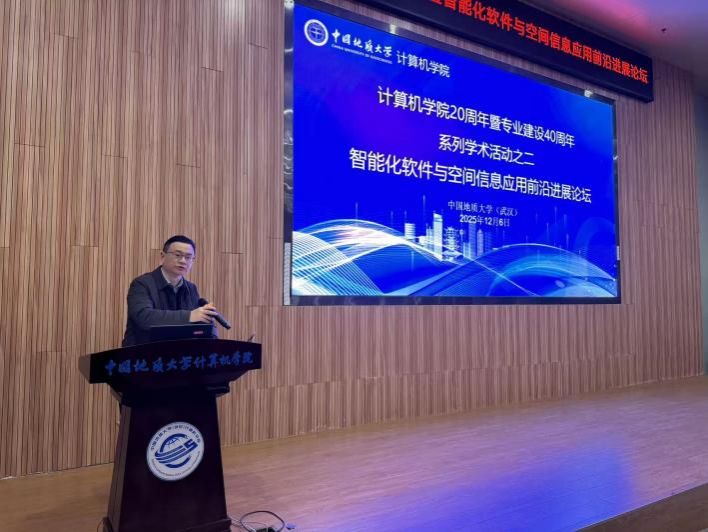 2025年12月6日,中国地质大学(武汉)计算机学院在学院成立二十周年和专业建设四十周年之际,成功举办了“智能化软件与空间信息应用前沿进展论坛”。本次论坛是计算机学院成立20周年暨专业建设40周年系列学术活动之二,共吸引了200余名与会代表参与,展示了智能化软件与空间信息应用领域的最新科研成果。此次论坛不仅为学院的二十周年庆典增添了浓重的一笔,也成为学院在智能化软件与空间信息领域学术影响力的集中体现。