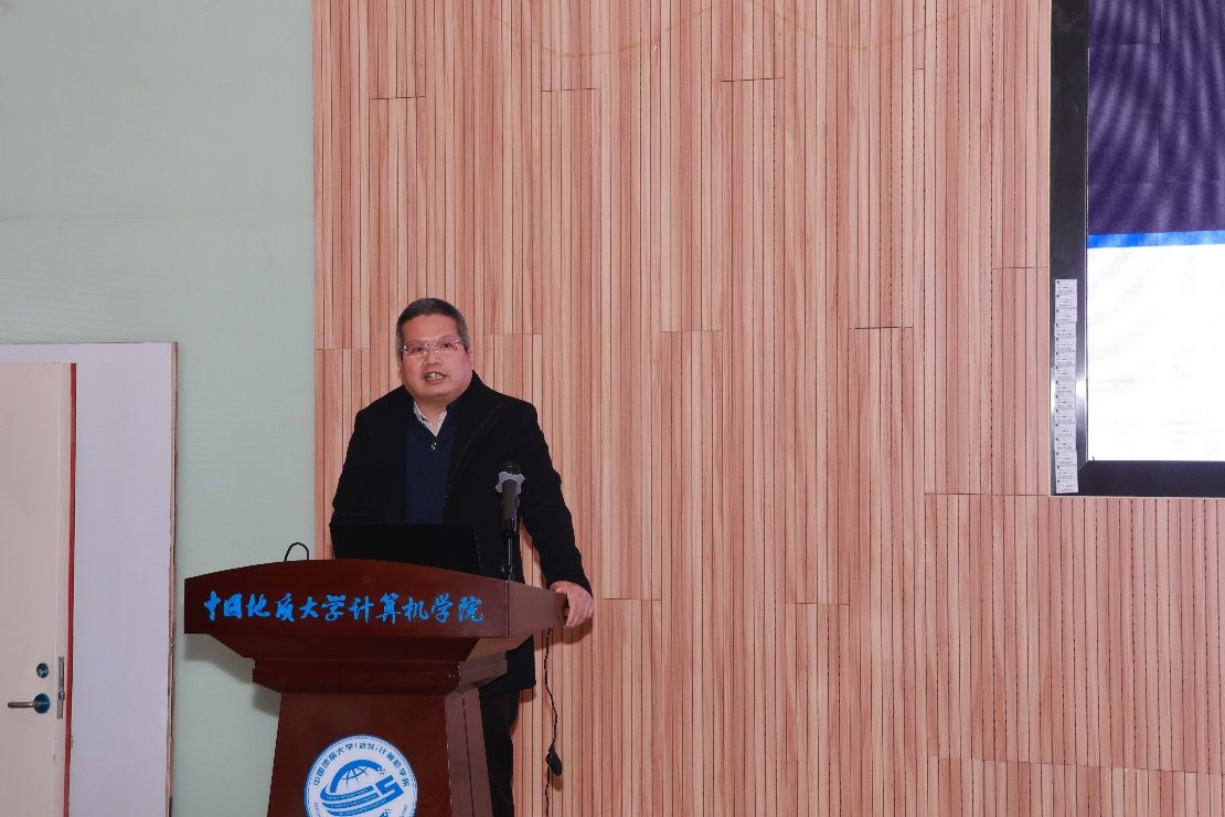 首先由中国地质大学(武汉)计算机学院院长张洪艳教授主持报告会开幕式。他对计算机学院自地矿部武汉计算站发展至今的历程进行了回顾,介绍了学院与地球科学结合发展的学科特色,对与会特邀讲者进行了简要介绍。