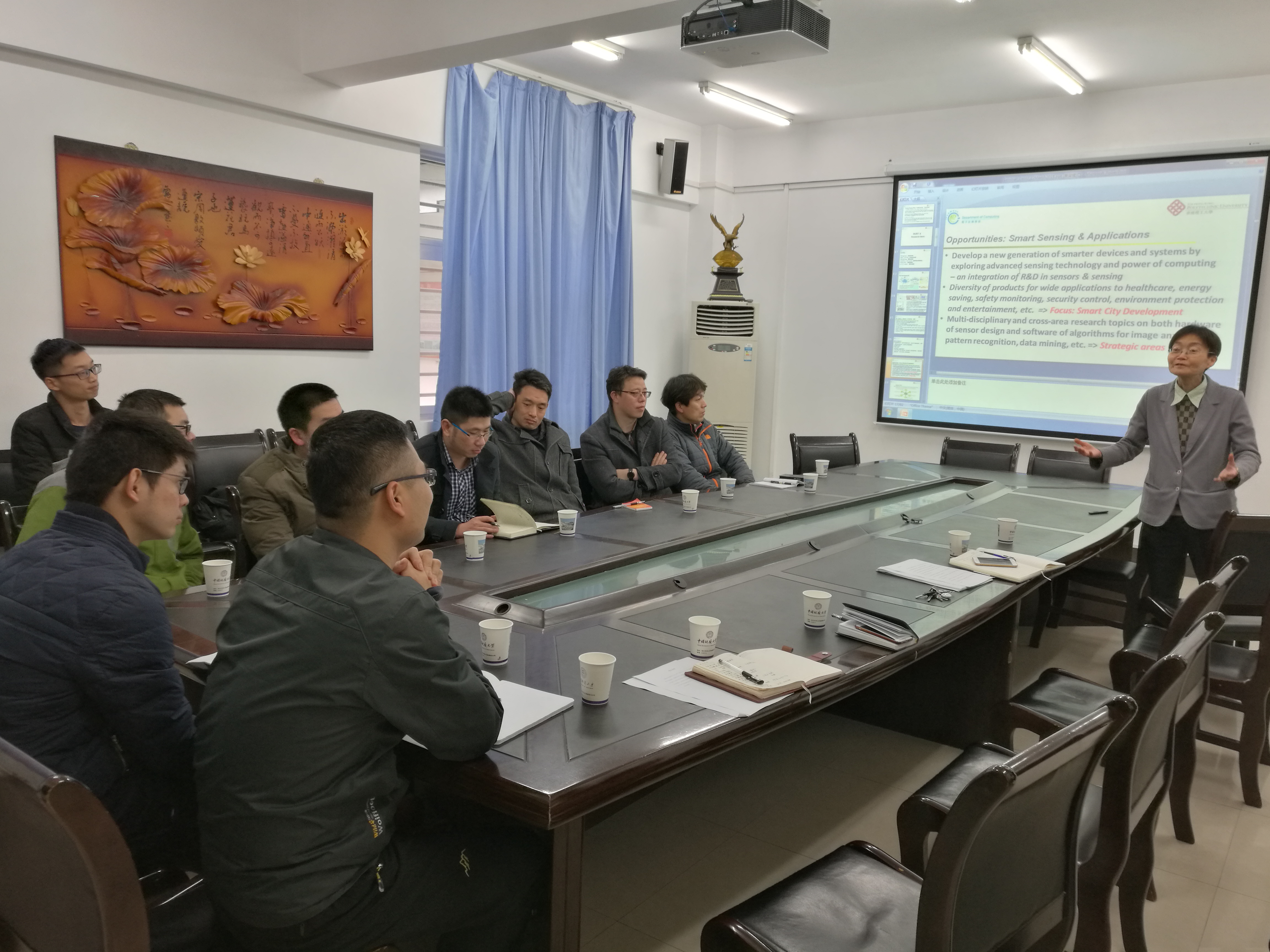 3月22日,应计算机学院李小燕老师的邀请,香港理工大学电子计算机系尤佳教授来我院访问,并做了题为“On advanced sensing for smart city development”的学术报告。尤佳教授于1986年获得西安交通大学电子工程专业本科学位,于1992年获得澳大利亚拉筹伯大学计算机科学专业博士学位,1993年至2002年任职于南澳大学和格里菲斯大学,自2003年任职于香港理工大学电子计算机系。她的主要研究方向是图像处理、模式识别以及医学数据分析,开发了很多系统并获得了很多国际大奖。已发表的学术论文有280余篇。尤教授还是人才培养的专家,已指导香江学者四名,其中两人回国后入选优青,一人回国后入选国家级人才计划。报告在张冬梅副院长的介绍下隆重开始。
