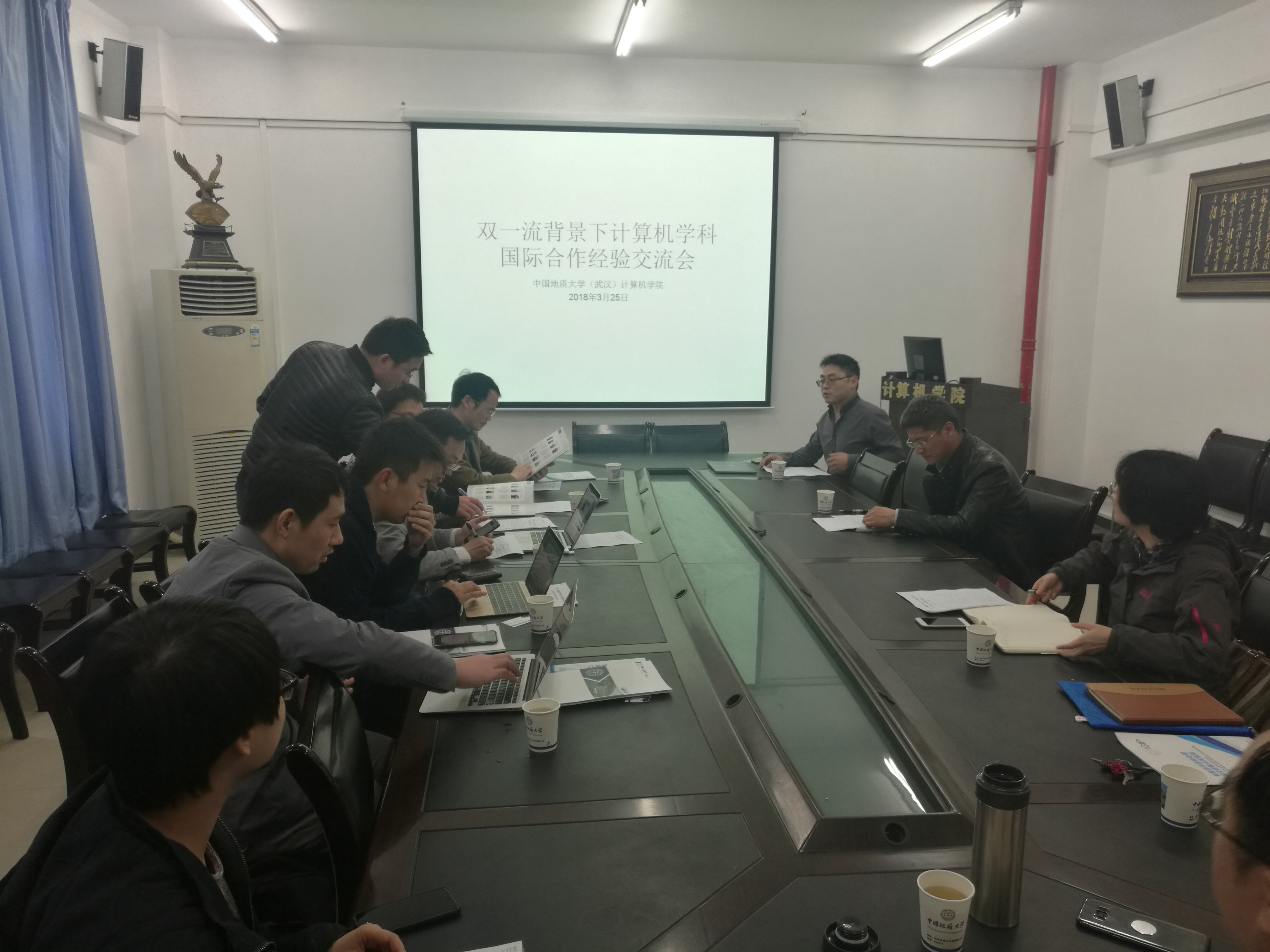 (通讯员:石剑峰)2018年3月25日。“双一流建设”背景下计算机学科国际交流合作经验交流会在我院北一楼会议室胜利召开。会议由我院网络工程系主任曾德泽主持。我院王力哲院长、张冬梅副院长、各系主任和来自日本的会津大学李鹏老师、静冈大学刘志老师、茨城大学王潇岩老师及来自我国南京信息工程大学付章杰老师、香港理工大学王堃老师参会。