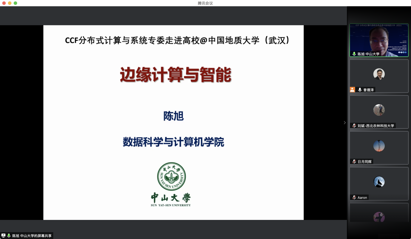 “CCF分布式计算与系统专委走进高校系列报告会”第1期——走进中国地质大学(武汉)于 2020 年7 月 25日在线成功举办。该活动由中国计算机学会主办,CCF会分布式计算与系统专业委员会、中国地质大学(武汉)计算机学院、智能地学信息处理湖北省重点实验室承办。分布式计算与系统专委会委员国防科技大学郭得科教授、南京大学叶保留教授、中山大学陈旭教授应邀作学术报告,中国地质大学(武汉)曾德泽教授主持会议。会议采用线上腾讯会议和 B 站会议直播的方式,下午参加腾讯会议的人气峰值达175,观看直播的人气峰值达300余人,累计参会人数近500人。参会人员来自包括中国地质大学(武汉)、南京大学、中山大学、国防科技大学、华中科技大学、武汉大学、南开大学、武汉理工大学、中南财政政法大学、华中师范大学、武汉工程大学、湖北大学、西南大学、南京邮电大学、南京理工大学等多所高校。