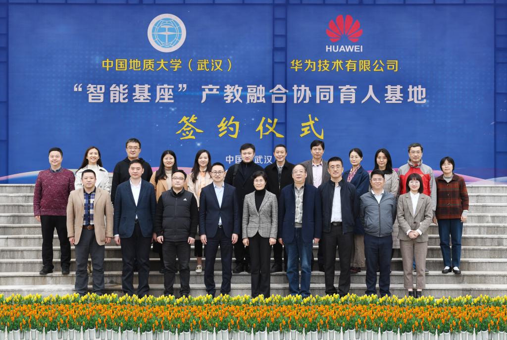 会上,计算机学院副院长陈云亮介绍了学院发展情况和基地建设主要内容。计算机学院院长王力哲和刘湘清代表校企双方签署《中国地质大学-华为“智能基座”产教融合协同育人基地合作协议》。黄晓玫与许映童共同为“智能基座”产教融合协同育人基地揭牌。