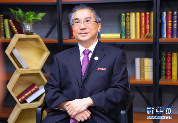 图为中国地质大学(武汉)校长、中国科学院院士王焰新日前接受新华网采访。新华网赵梦琪摄