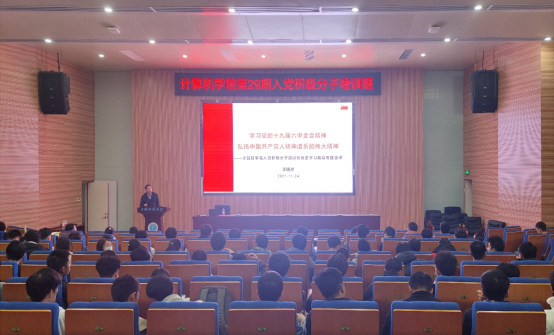 (通讯员:杨书睿)为学习贯彻党的十九届六中全会和习近平总书记七一重要讲话精神,深入推动党史学习教育,11月24日中午,学院党委书记李国昌为计算机学院第29期入党积极分子主讲《学习党的十九届六中全会精神,弘扬中国共产党人精神谱系的伟大精神》专题党课。