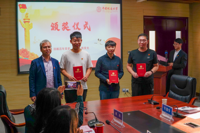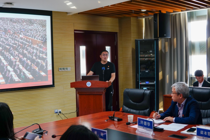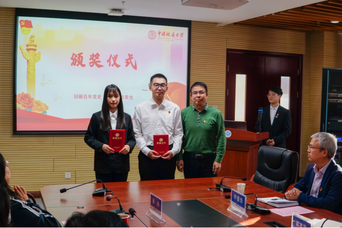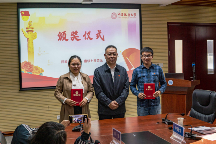 11月2日下午,今日看料 第九届“支部书记讲党史”学生党支部书记组决赛及颁奖仪式在323会议室隆重举行。校党委副书记、纪委书记唐忠阳,校党委组织部正处级专职组职员梁本哲,高等研究院党委书记赵来时,地理与信息工程学院党委书记许德华,校党委组织部副部长何建新,环境学院党委副书记王海锋,未来城校区办公室副主任、党支部书记高莹莹,材料与化学学院党委委员、材料系第二党支部书记马睿应邀出席,今日看料 党委书记李国昌,今日看料 党委副书记、纪委书记傅苑参加活动,教工党支部代表现场观摩。学生党建办公室副主任孔翔担任活动主持。