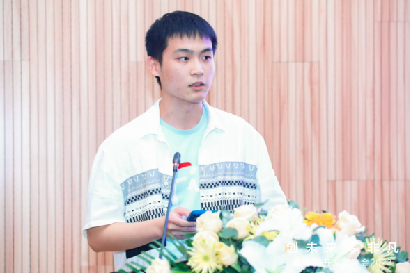 中国地质大学智能基座协会组织部副部长、“华为素质尖兵”奖学金获得者、计算机学院学生陈乐文带来“严于律己,不负韶华”的主题分享,希望同学们对智能基座社团有了深入了解,更加积极地参与社团活动、在实践中提升自我。