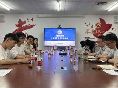 6月19日,计算机学院2023届毕业生代表座谈会于计算机学院309会议室举行。院长张洪艳,副院长胡成玉,院党委副书记、纪委书记傅苑,副院长陈云亮,研究生辅导员李欢欢和本研毕业生代表出席会议,2019级本科生辅导员闫维蓉主持会议。