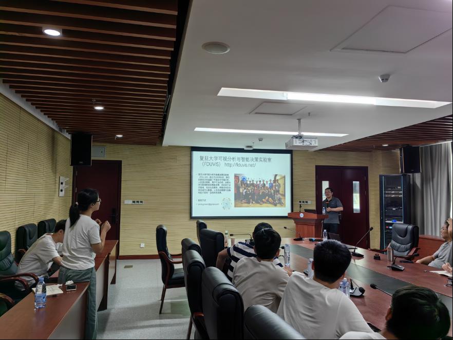 2023年8月15日,应计算机学院刘刚教授、陈麒玉特任教授的邀请,复旦大学大数据学院博士生导师陈思明研究员来我院访问并与师生分享“人机融合交互式可视分析:交互探索、模型解释与故事叙述”方面的研究进展,为学院师生带来了大数据可视化与可视分析研究领域的前沿成果。学术报告在计算机学院323会议室举行,计算机学院相关专业的师生30余人线下参加,报告会由陈麒玉特任教授主持。