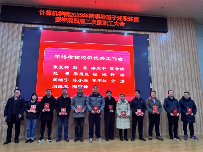 李国昌代表院领导班子作2023年述职报告。他表示,2023年,学院坚持党建引领,师生政治站位进一步提升,党的建设全面加强,全面从严治党深入推进,校友、工会、统战、群团和安全稳定等工作保障有力,学院办学水平进一步提升;学院坚持攻坚克难,“十四五”规划总体进展顺利,学科平台建设成效显著,师资队伍建设稳步推进,高水平人才培养机制不断完善,课程建设取得新成绩,学科竞赛生态不断优化,招生就业取得优异成绩,学院的思政教育成果不断涌现,科研能力大幅提升,学术交流合作与社会服务方式日益多元,内控机制逐步完善,学院实现高质量发展。同时他还指出学院领导将继续提升素质与能力,坚定不移推进学院2024年工作不断取得新的成绩。