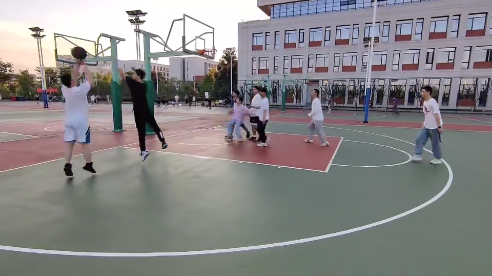 视角二:胡老师是个热爱运动的人,经常带着实验室的同学们进行体育运动。记得有一天下午天气很好,刚和胡老师讨论完学术,胡老师让我喊着同门师兄师弟一起打篮球,在篮球场上,胡老师马上进入一个新的状态,得分篮板助攻样样在行,无论在科研还是生活中,胡老师都是一个很认真的人。