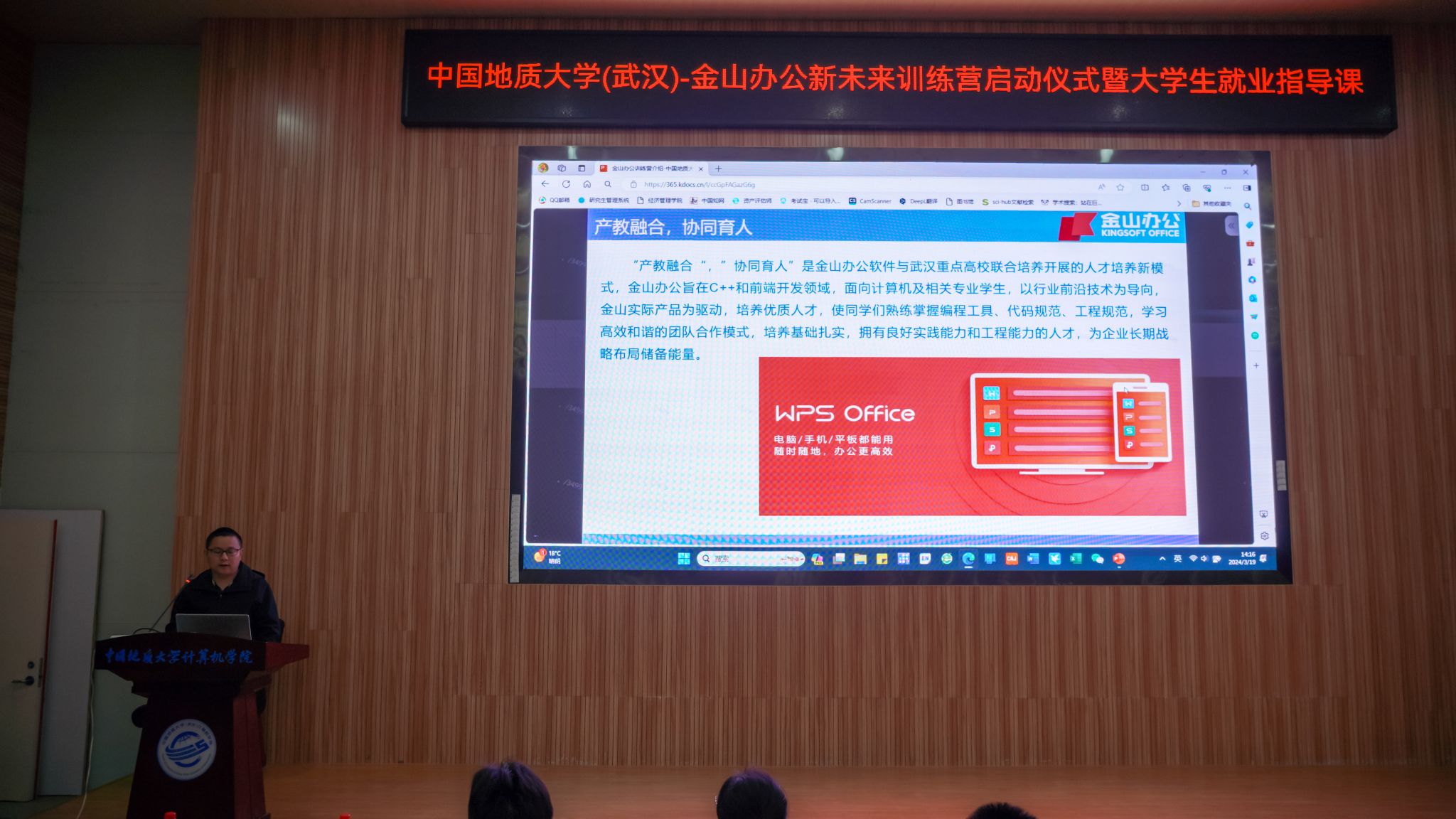 2024年3月19日,新一期的“中国地质大学(武汉)-金山办公新未来训练营”正式启动。金山办公助理总裁、云和协作事业部副总经理杨钢,武汉金山办公招聘总监、研发培训院总监陈志增,武汉金山办公研发培训院副总监武海涛,总经理助理陈泉源奕,计算机学院党委书记李国昌,校党委组织部副部长冷再心,研究生院研究生团工委书记王斯韵,金山办公新未来训练营班主任谭文博,金山办公新未来训练营优秀营员代表熊猛及参训学员160人参加。计算机学院党委副书记林小艳主持启动仪式。