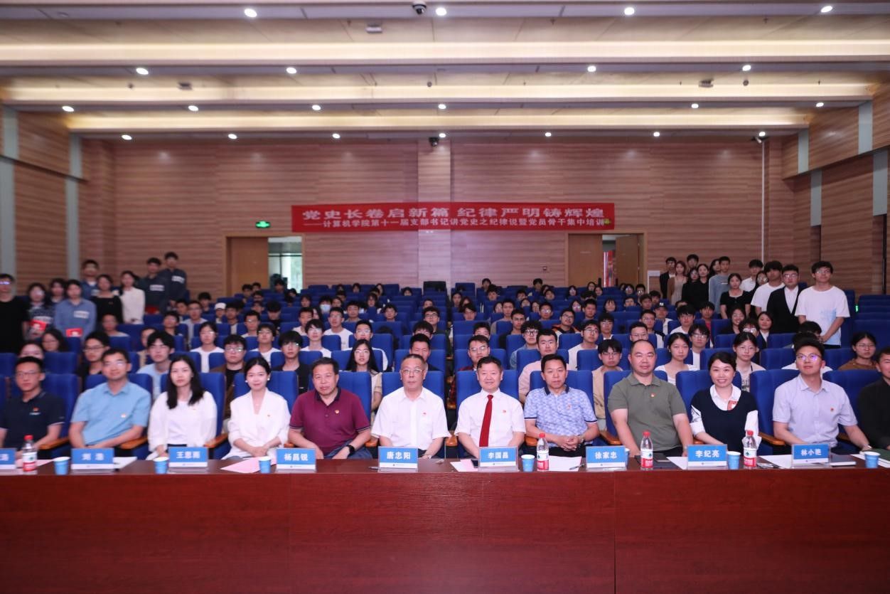校党委副书记、纪委书记唐忠阳高度肯定了计算机学院“第十一届支部书记讲党史之纪律说”活动。他说,本次活动聚焦党纪学习教育主题,参加对象不仅继续覆盖了全院师生党团支部,还将范围扩展到经管学院、校友群体和信息类头部企业,学院党委书记也亲自示范,主题鲜明,形式新颖,内容丰富,实现了党团共建、师生校友互育和院际、院企联学的生动局面,值得借鉴。他强调指出,开展党纪学习教育是落实全面从严治党要求、加强党的纪律建设的基础性、经常性工作。广大党员要提高政治站位,深化思想认识,深刻领会开展党纪学习教育的重要意义;要切实履行好纪律教育主体责任,准确把握党纪学习教育的目标要求;要加强组织组织领导,抓好统筹实施,推动党纪学习教育走深走实;要坚持问题导向,把握学习的实效性。最后,唐忠阳寄语在场的师生党员,要时刻以党纪国法约束言行举止,内化于心、外化于行,坚定理想信念,严守党的纪律,坚定不移地听党话、跟党走,做党的事业的合格接班人。
