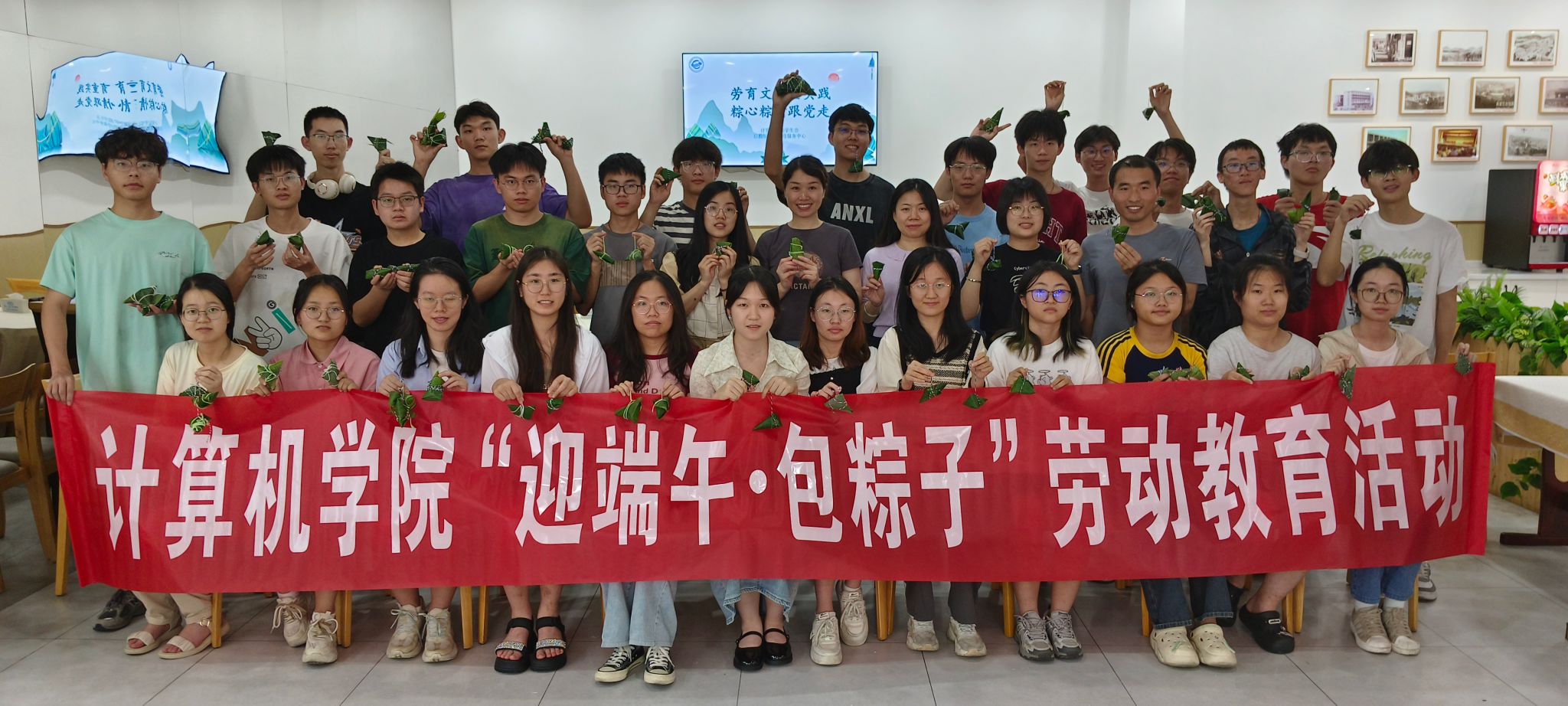 为进一步弘扬和培养爱国主义精神,传承中华优秀传统文化,贯彻劳动育人精神,丰富大学生的校园文化生活,6月10号下午,计算机学院与接待服务中心党支部在震旦园教工餐厅共同开展“迎端午·包粽子”劳动教育活动。计算机学院党委副书记、纪委书记林小艳,团委书记王太茂,团委副书记闫维蓉,辅导员刘佳丹及2023级30余名学生参加,活动由接待服务中心党支部书记吴华玉主持。