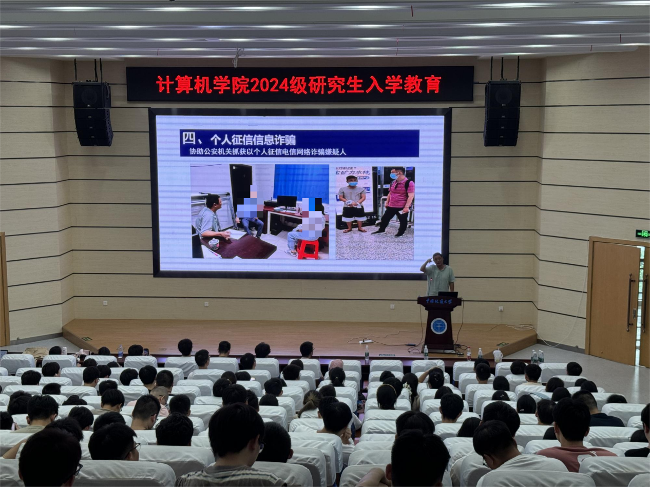 2024年9月5日,计算机学院2024级研究生入学教育第2期活动在公教一栋208阶梯教室成功举行。本期活动特别邀请学校大学生心理健康教育中心王煜老师,左岭派出所陈剑副所长、韩红卫警官,未来城保卫综合办公室张献文主任、张涛老师,开展关于心理健康教育及国家安全、网络安全、校园安全专题讲座,旨在提升研究生新生心理健康意识、正确面对压力和释放压力,筑牢安全责任意识,坚守国家安全及网络安全底线,维护校园安全和个人财产安全。