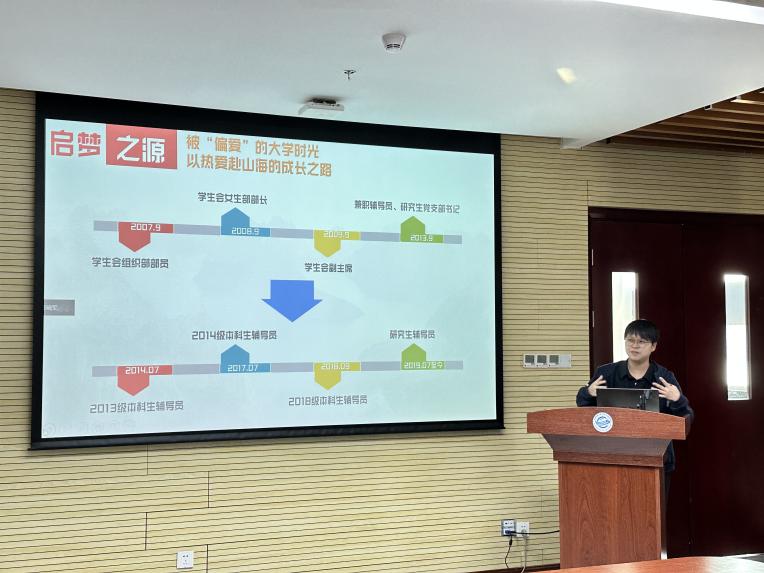 李欢欢以“青春梦想合伙人——辅导员工作实践与体会”为主题,从启梦之源、筑梦之旅、伴梦之行、逐梦之思四个方面向做汇报和交流。她认为,是学生时代地大、计算机学院的无私培养、关怀和温暖,坚定自己留校做辅导员的信念;是优良的学院教风学风和学工传统,使自己在学生思政教育与专业教育融合、专业技能与社会服务能力融合、专业理论学习与双创实践融合、教育管理与学生综合发展方面进行了积极探索,并收获成长与荣誉,成为学院这么多年来一代代优秀学生工作者薪火相传中的一把火、一束光。她表示,高校老师作为学生的“青春梦想合伙人”,在帮助学生追梦和圆梦的过程中,也在实现自己的人生梦想和人生价值。