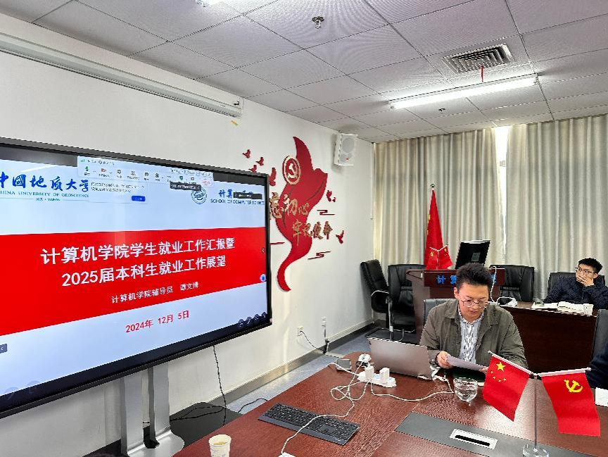 谭文博作就业工作汇报。他回顾了学院就业育人和校企合作取得的一系列成效,分析了学院近4年学生就业情况,并汇报了2025届毕业生目前的就业进展。他提醒老师们抓好促就业的时间节点,提前谋划就业工作,重点帮扶就业困难学生。
