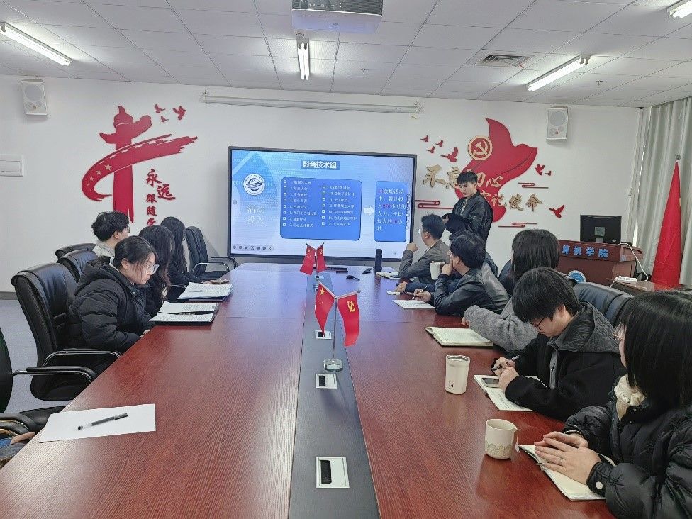 学院团委组织部、学生会、全媒体中心、志愿者协会、学生党建办公室、研究生团学组织负责人分别从工作职责、工作成效、现有不足及未来规划等方面汇报了部门工作。