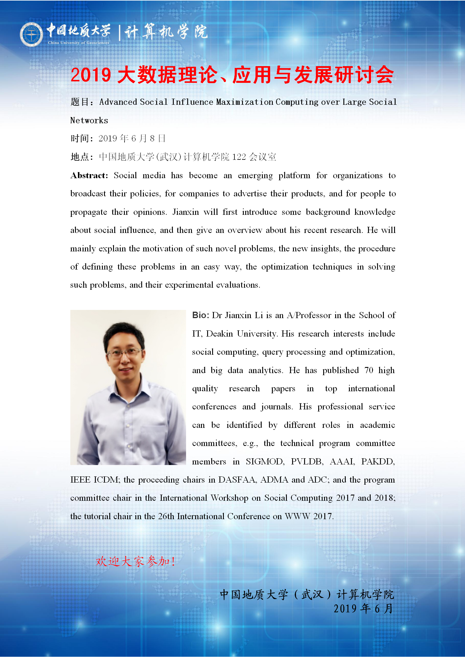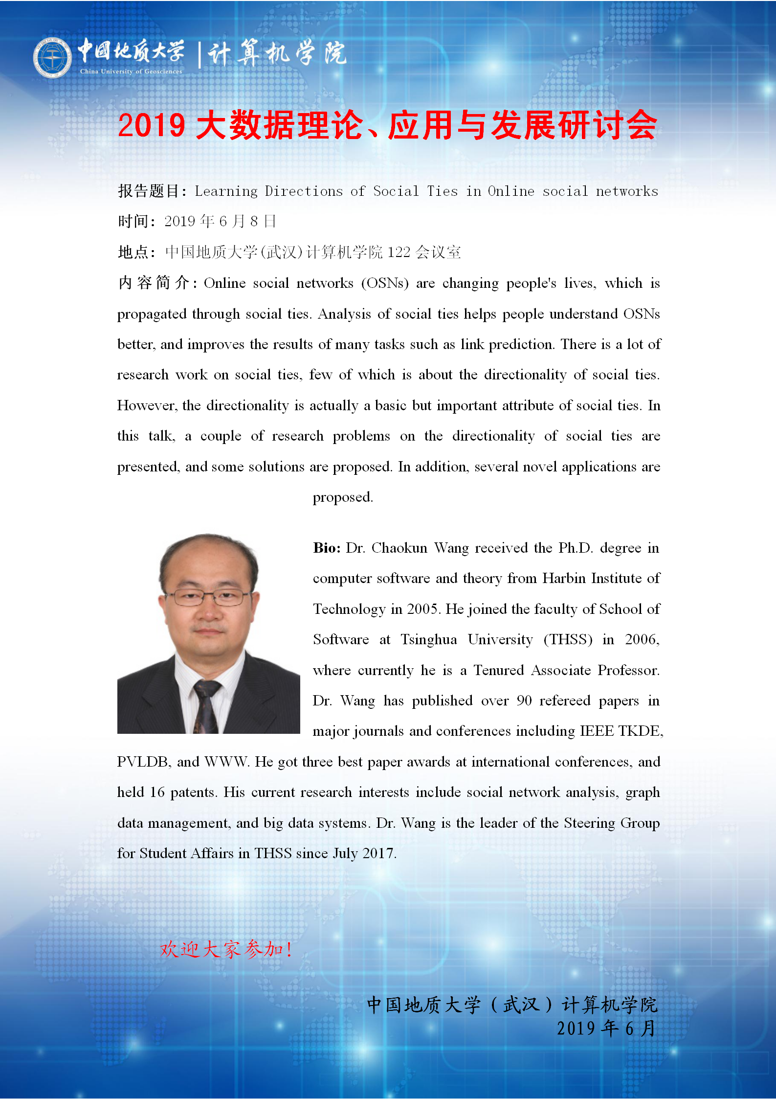 学术会议——2019大数据理论、应用与发展研讨会