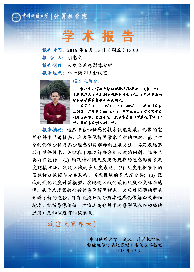 深圳大学胡忠文老师学术报告:尺度集遥感影像分析