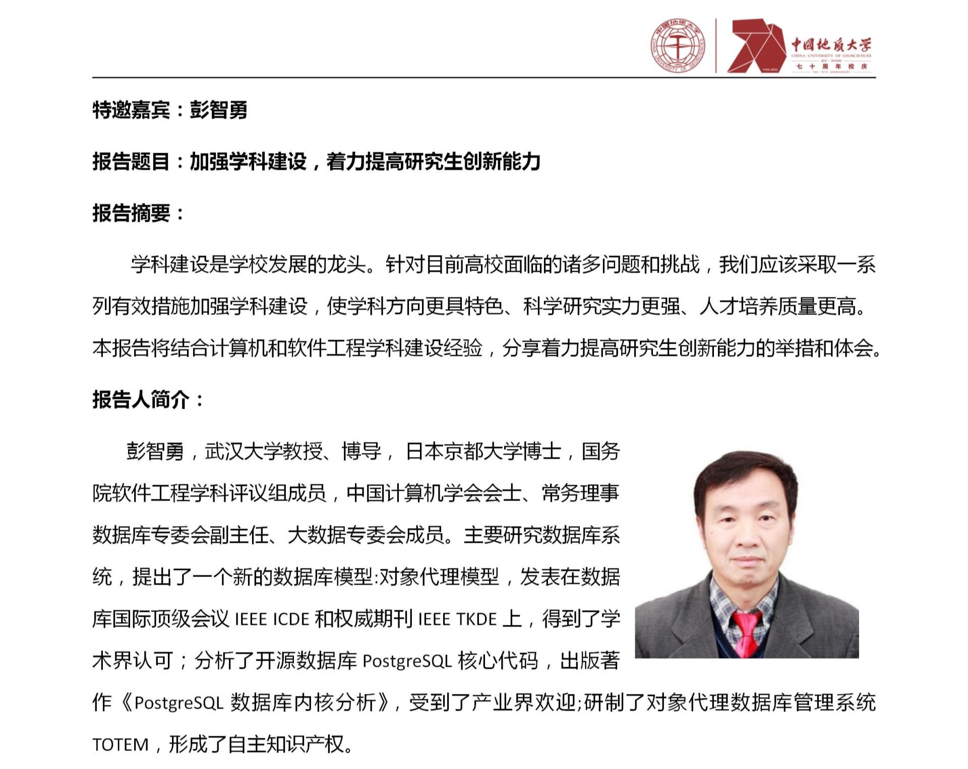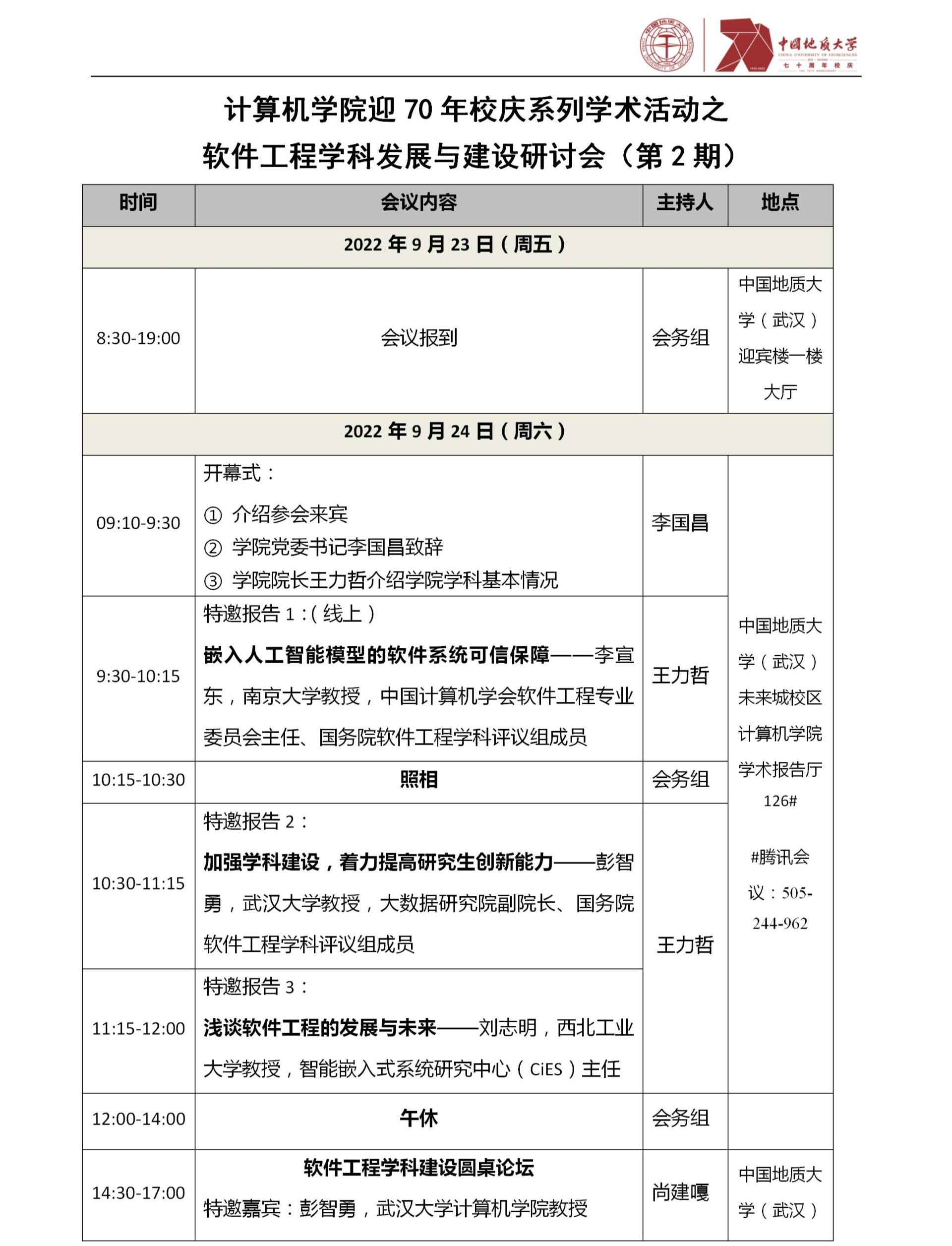 中国地质大学(武汉)70周年校庆学术活动之计算机学院软件工程学科发展与建设研讨会(第2期)