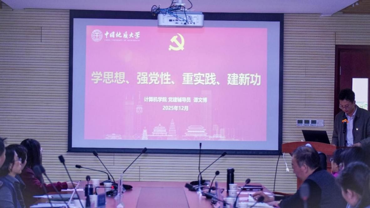 随后,谭文博对计算机学院学生党建办公室年度工作进行汇报,分别从夯实基础,学生党建规范有序;创新亮点,理论学习与仪式教育创新提质;理论实践结合,坚持党建引领三个板块进行汇报。未来学生党建办公室将继续优化党员教育体系,持续提升学生党建工作质量,为学院高质量发展提供坚强保障。理论政策部副部长李紫晗汇报2025年度主题党日规范化建设专题工作,对年度主题党日巡视情况进行通报并强调主题党日材料提交要求。