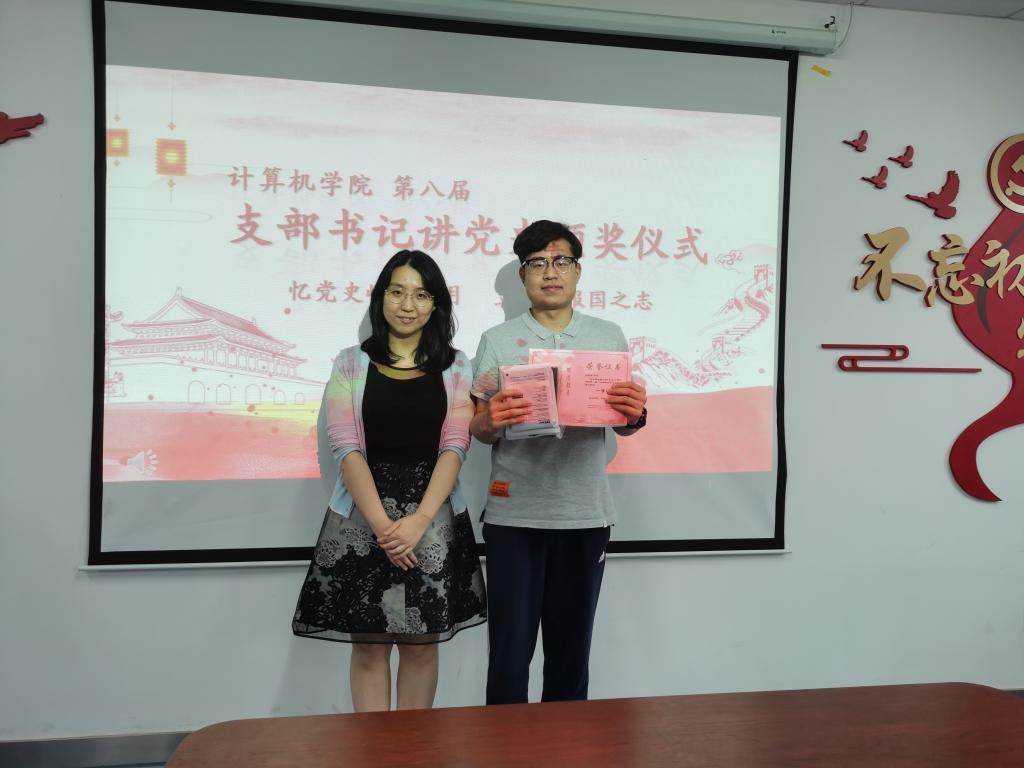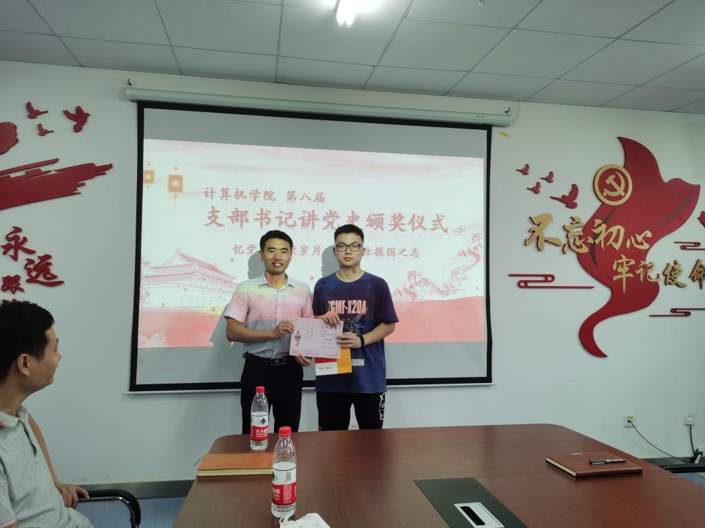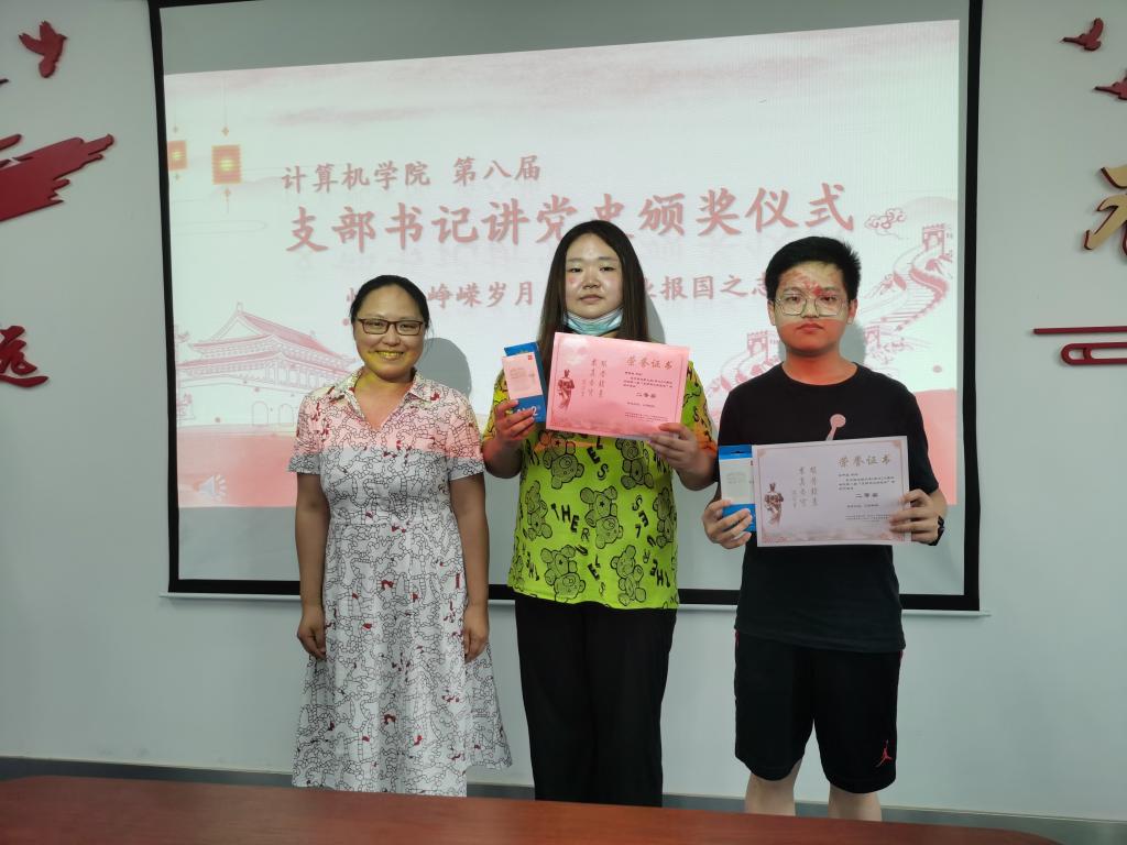 (通讯员:孙彦钦)6月16日下午,支部书记讲党史颁奖仪式于学院楼309会议室隆重举行。学院党委副书记、纪委书记傅苑,学院党委委员、院办公室主任石剑峰,应用系教工党支部书记武云,学院学生党建办公室主任王太茂,获奖党支部书记,毕业生党支部书记参加颁奖仪式。历经月余,计算机学院第八届支部书记讲党史落下帷幕。经初赛遴选、复赛选拔,最终有7名同学斩获奖项。