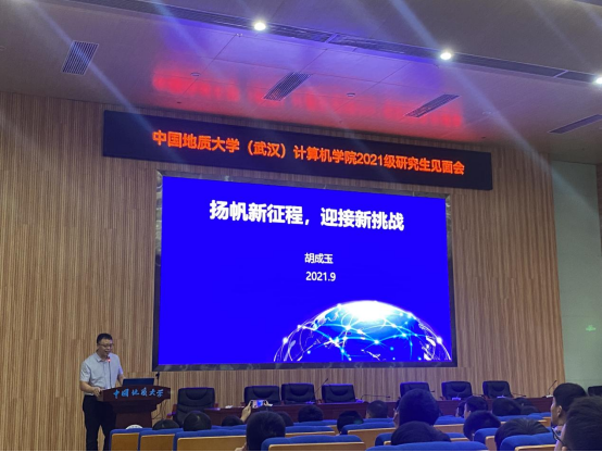 随后,胡成玉以“扬帆新征程,迎接新挑战”为主题做关于研究生专业学习的专题介绍。胡成玉以学科建设发展数据为切入,介绍学科建设进展,总结了我院研究生的就业特点——“薪水高、地点好、速度快、强度大”,但也面临巨大挑战。他对同学们提出4点建议和要求:学习中要用“洪荒之力”;学术研究方面要听从导师安排;坚守学术诚信,杜绝学术不端;坚决杜绝抵制实验室打游戏等行为。