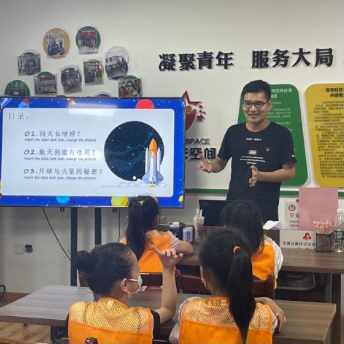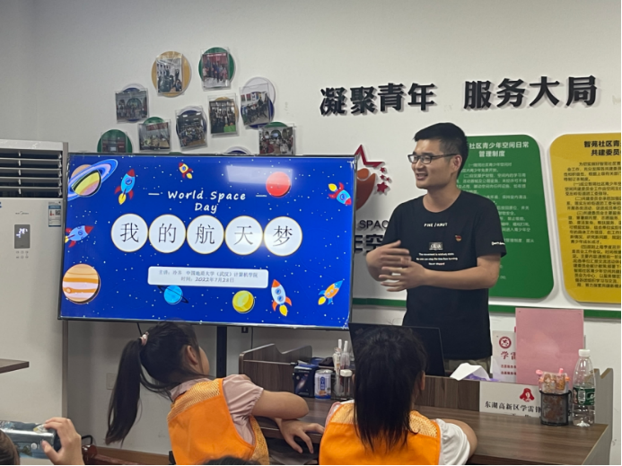“‘问天’在太空到底忙些啥?未来我们是否可以移民火星?拥有变重力科学实验柜的问天实验舱到底长啥样?”一个个稚嫩的航天梦正在一张张桌椅的“小天地”里悄然萌芽。7月28日,计算机学院博士生党支部追随习近平总书记的脚步,前往武汉东湖高新区左岭街道智苑社区,面向社区青少年开展航天科普宣讲专题课程,充分发挥学科优势,激发科学兴趣,厚植科学精神,引导青少年在科学探索中茁壮成长,携手共绘航天梦和中国梦。
