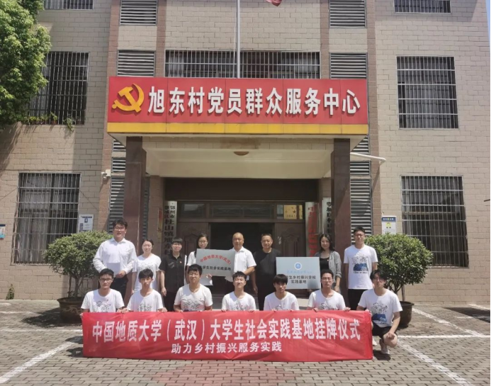 2022年7月16日上午,中国地质大学(武汉)大学生乡村振兴学校实践基地暨大学生社会实践基地挂牌仪式于鄂州市鄂城区杜山镇旭东村新时代文明实践站成功举办,中国地质大学(武汉)计算机学院党委副书记傅苑,计算机学院团委书记李欢欢,鄂州市鄂城区杜山镇人大主席王忠良,杜山镇副镇长王春媛,杜山镇旭东村支部书记、村委会主任李松林,中国地质大学(武汉)计算机学院辅导员、学生会指导老师李祥瑞,“筑梦E路人”社会实践团队成员参与挂牌仪式。