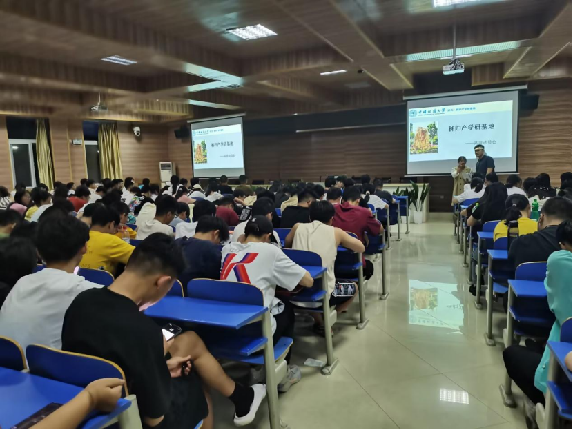 31日中午,56位计科学子满怀期待踏上中国地质大学秭归科教基地,短暂的休整安顿后再次集合领取实习装备。晚上19:30,实习团队齐聚综合楼阶梯教室,举行了一场热情洋溢的动员大会。孙志昂老师代表基地对全体师生表示热烈的欢迎,并从衣食住行各方面介绍了基地的充分准备。赵素涛老师详细介绍了带队老师团队以及本次实习目标和计划。最后袁晏明老师进行总结讲话,鼓励大家要充分发挥专业特长,勇敢面对挑战。抛开教科书,用眼观察当今时空下的每一寸地貌,用心体会地球变迁的沧桑。