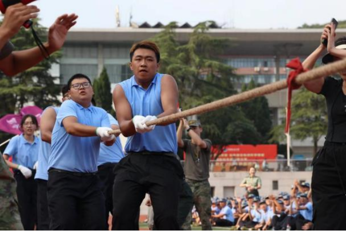 为丰富军训活动,增强学生身体素质,提升各连队凝聚力,发扬团队精神,中国地质大学(武汉)2023级本科生军训拔河比赛在西区田径场举行。21位计科学子自告奋勇代表学院参赛,其余新生作为观众为参赛队员们加油助威。