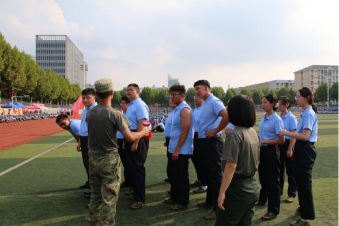赛前,计算机学院教官和辅导员闫维蓉向参赛队员传授拔河技巧,带领参赛队员进行热身活动,提醒计算机学院观赛同学要将口号喊出气势,彰显计科学子高昂的精气神。下午三点,西区田径场上人声鼎沸,拔河比赛一触即发。