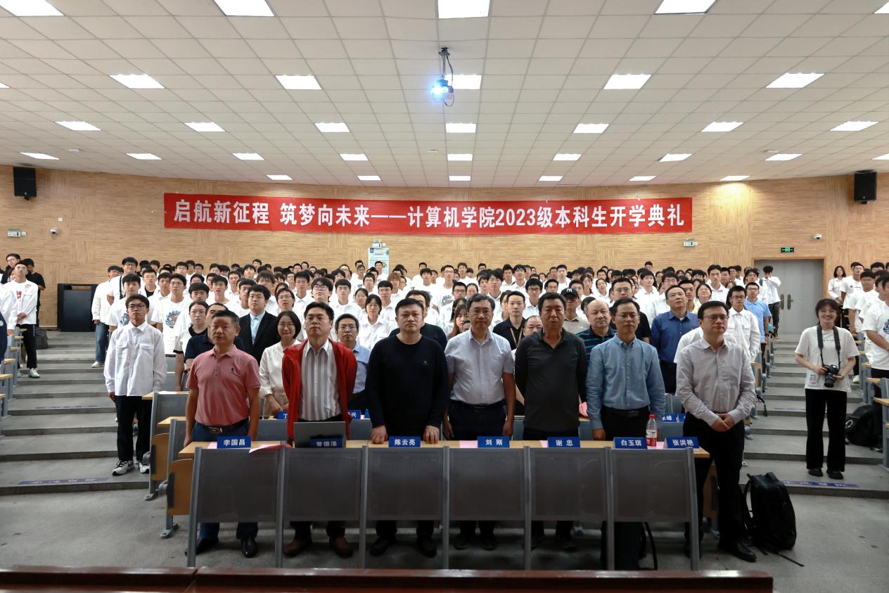 9月26日中午,中国地质大学(武汉)计算机学院2023级本科生开学典礼在南望山校区教三楼109教室隆重举行,学院党委书记李国昌,学院党委副书记、院长张洪艳,副院长刘刚、陈云亮、曾德泽,学院党委副书记、纪委书记林小艳,教师代表谢忠,学院团委书记王太茂,辅导员闫维蓉,2023级班主任、2023级新生之友、2023级全体本科新生参加典礼。93级校友、清华大学地球系统科学系长聘教授白玉琪受邀出席。