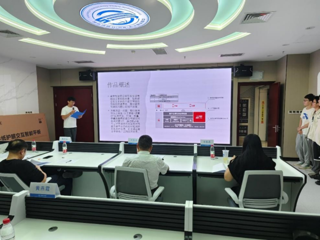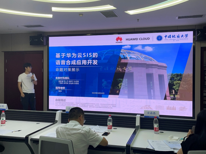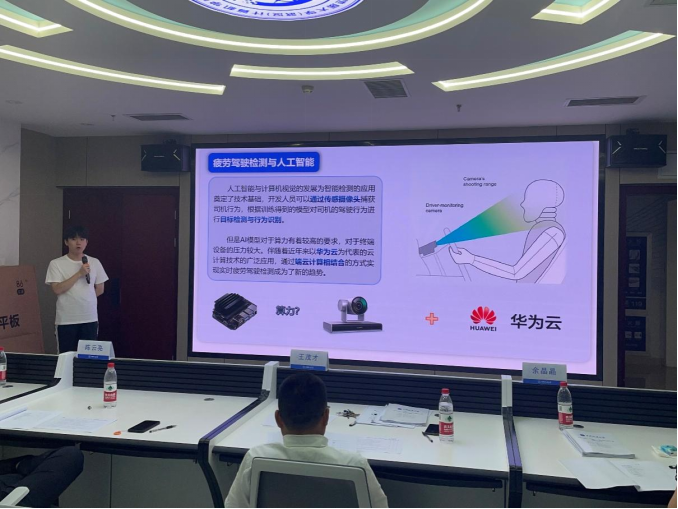 前期,计算机学院组织了校内初选,五个项目脱颖而出晋级校赛,分别是基于华为云pass的语音合成应用、基于端云协同的疲劳驾驶识别应用、端云协同疲劳驾驶实时检测、基于昇思Mindspore的医学图像分割应用、地学大数据共享服务平台。比赛现场,入围参赛队从项目背景、产品创新、商业模式、教育引领等多维度全方位展示本项目情况。各参赛项目团队以高质量的内容展示、自信得体的台风体现了我校学子创新创业风采,彰显了学校近年来创新创业教育改革的成果,为大家上演了一场精彩的比赛,以下是各个团队的答辩现场。