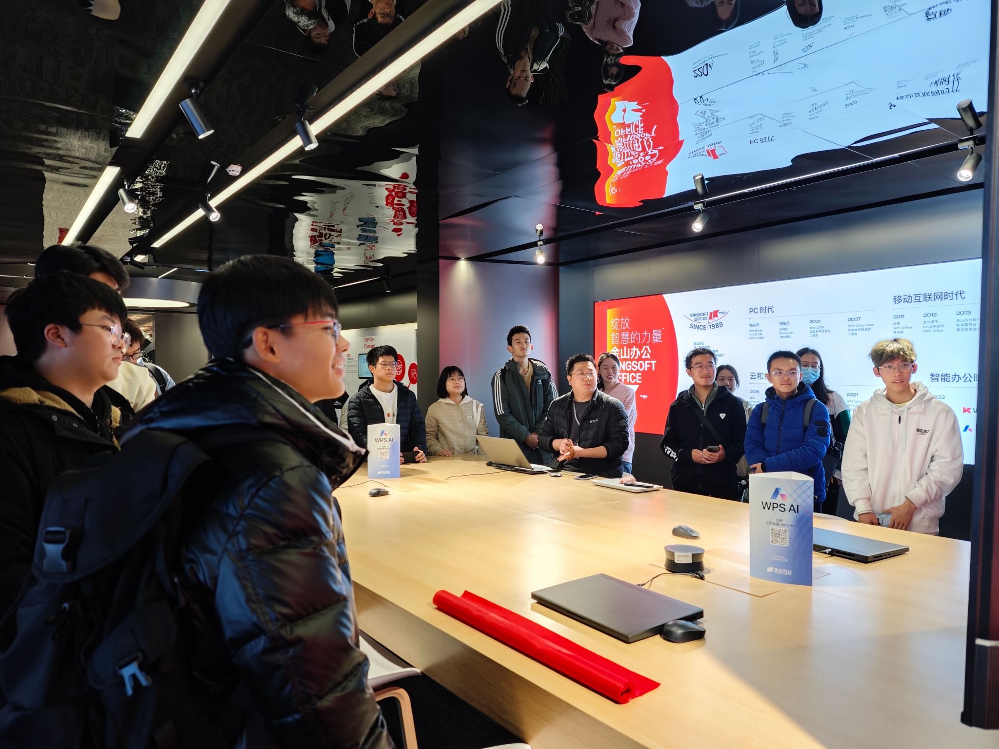 在参观过程中,吴刚石先生现场展示了WPS AI的技术原理和实践应用,让同学们切实体会到了人工智能的独特魅力和巨大潜力。参观后,同学们了解了金山办公的发展历程、品牌理念、业务范围和技术实力,深入地探讨了计算机领域的前沿问题。