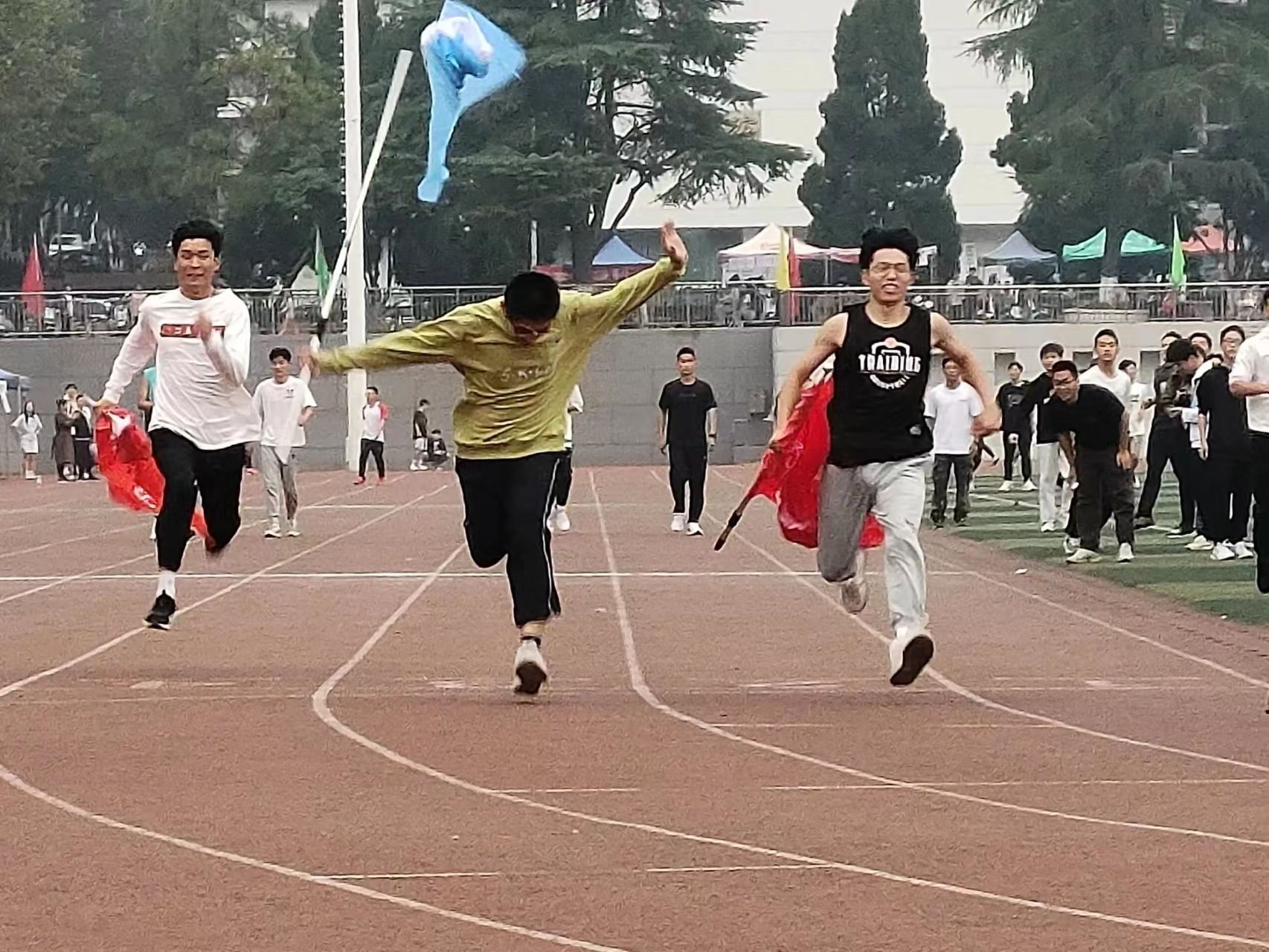 赤红的跑道上,是那一个个破风的身影。他们的眼前是冲刺的终点线,尽管汗水模糊了视线,仍旧奋力冲刺。耳畔是同学们的加油助威,脚下是愈加坚定的步伐。其中,男子组石亮同学斩获400米第二名、800米第三名,女子组李紫晗也获得了400米第四名的好成绩。
