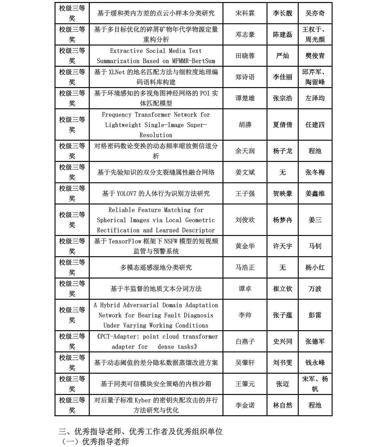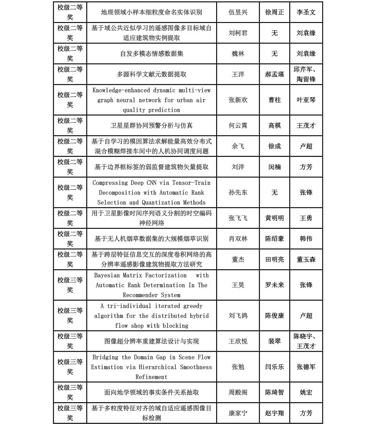 近日,学校第三十四届学生科技论文报告会落下帷幕。在此次科技论文报告会中,学院高度重视,教师积极参与指导,学院团委学生会、研究生会有效组织,我院参赛队伍总计213支,参赛人数与获奖数量均创下历史新高。根据学校相关文件精神,经专家评审,我院共获评校级特等奖2项,校级一等奖8项,校级二等奖26项,校级三等奖36项;王茂才、方芳、蒋良孝、张冬梅、唐厂等5位老师获评优秀指导老师;李欢欢获评优秀工作者;计算机学院获评优秀组织单位。获奖情况见附表。