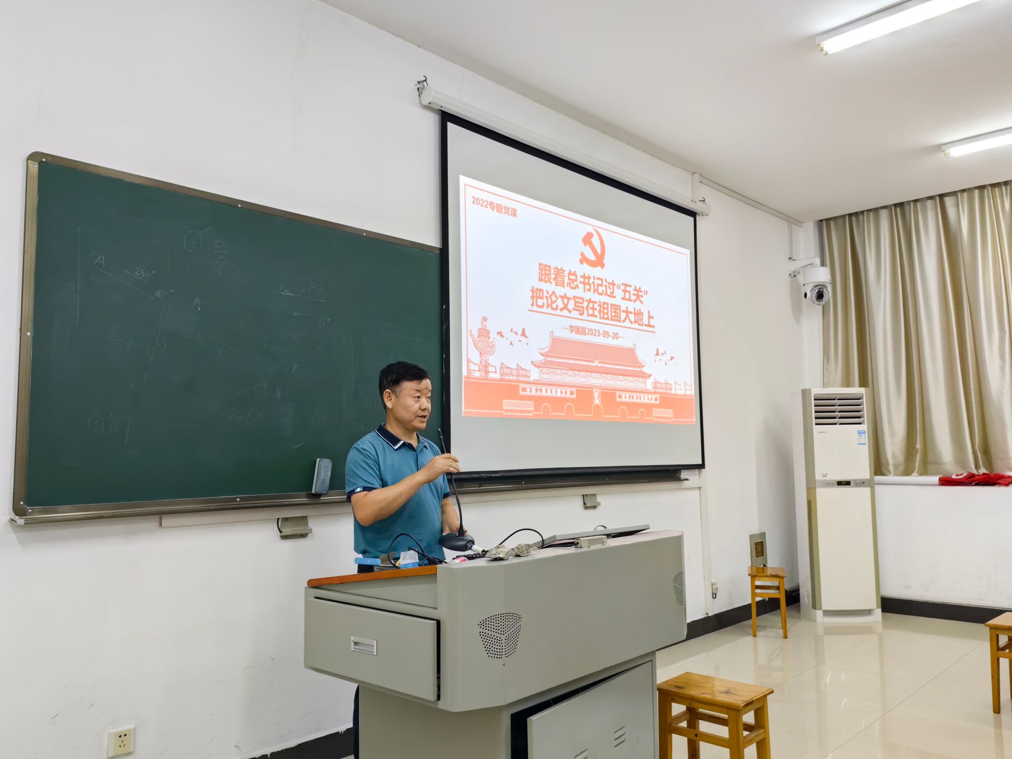 李国昌给同学们讲授了《跟着总书记过“五关”,把论文写在祖国大地上》专题党课。他先带领大家观看习近平总书记在陕北梁家河插队时过“跳蚤关、饮食关、生活关、劳动关、思想关”的采访视频,告诉同学们总书记也是从艰苦中走过来的,伟人学会克服万难,懒人选择怨天尤人。他指出大家当前面临勇气关、毕业关、职业关“三关”,希望大家向总书记看齐,克服干扰、排除万难,完成好各项学习任务。李书记还分享了近几年空信专业毕业生去向的详实数据,以“奋斗是青春最靓丽的底色,行动是青年最有效的磨砺”为指引,对比了保研、考研、就业的优秀学生和就业困难的学生,剖析了造成差距的原因,呼吁同学们确立目标,抓紧学习,积极竞赛,留下青春最浓墨重彩的一笔。现场播放了毕业生代表视频,勉励同学们志存高远,脚踏实地,坚定前进信心,为青春绽放绚丽之花,为民族堪当复兴之重任。