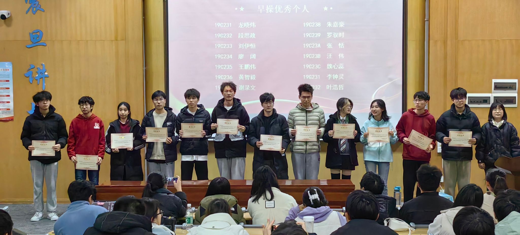 本次大会对本学期以来在宿舍文化建设、班级建设和各项工作中表现突出的同学进行表彰,这些获奖者不仅彰显了出色的集体荣誉感,也展现了个人在各方面的优异表现。希望各位同学在今后的学习生活中继续保持踏实、肯学、积极进取的态度,学会放眼未来、创新求索。