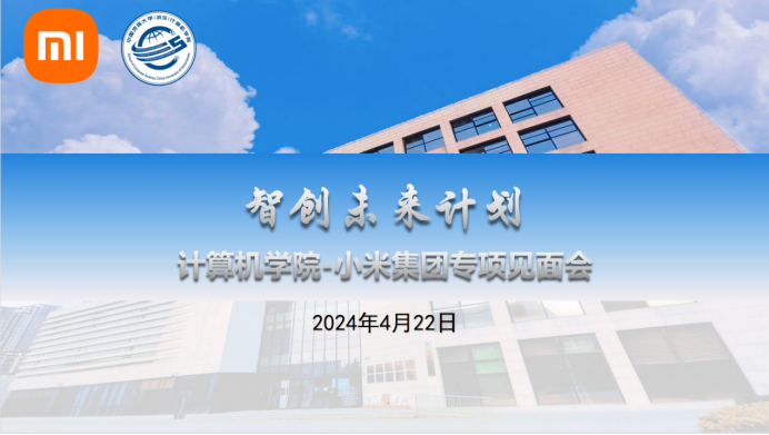 2024年4月22日,计算机学院联合小米集团在学院126报告厅开展“智创未来计划”专项见面会。小米集团技术委武汉研发中心总经理梁荣堂、小米集团技术委武汉研发中心副总经理周代国、小米集团技术委武汉研发中心副总经理王军伟、小米集团技术委武汉研发中心小爱算法团队负责人张帆一行四人参加,学院2021级本科生,2022级研究生400余人参加,专项见面会由计算机学院辅导员谭文博主持。