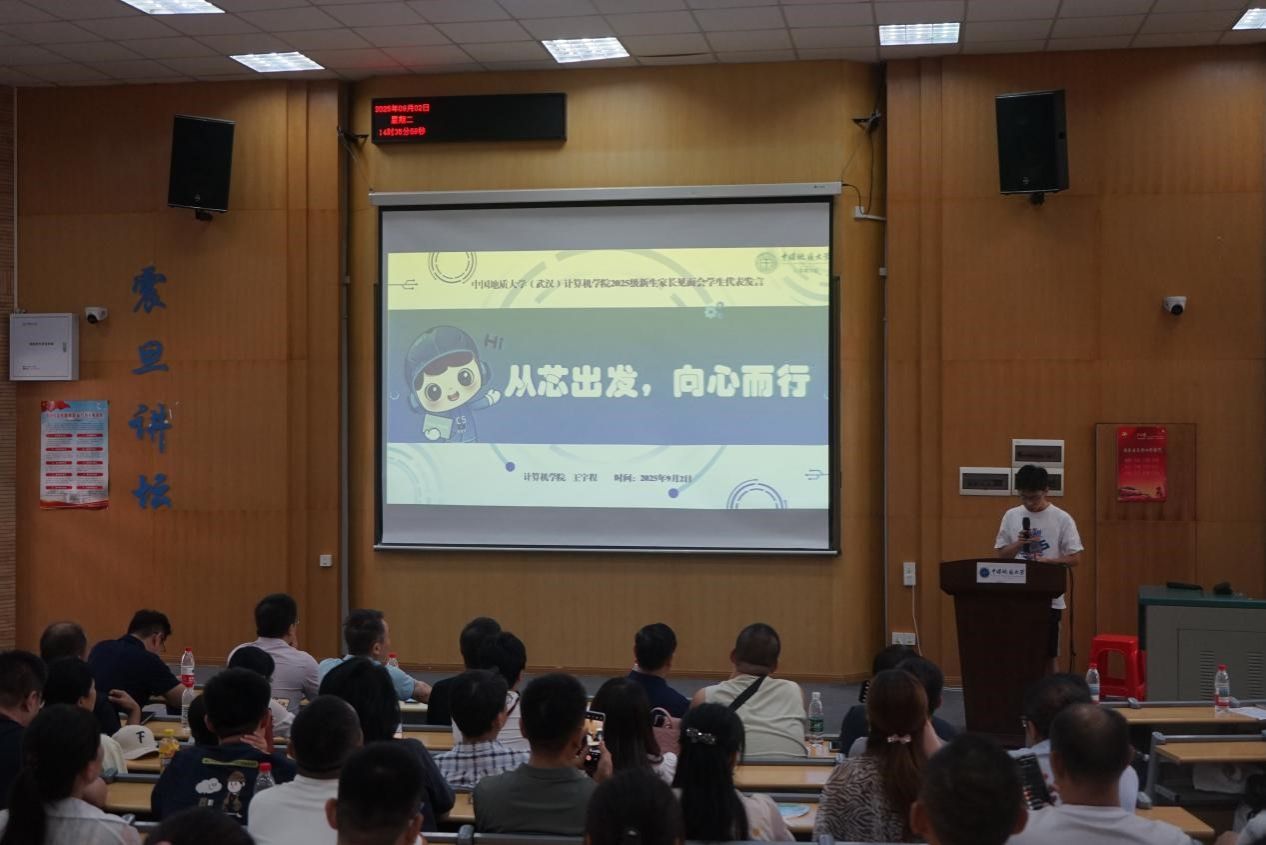 李国昌代表学院对全体新生家长表达了诚挚感谢。他强调,地大是一所肩负国家使命的行业特色高校,具有强大的办学实力、优良的校风学风传统和一流的人才培养质量,为国家的发展作出了重要贡献;我们计算机学院具有一流的师资队伍、一流的学科专业、一流的科研产出和一流的人才培养质量,大家选择地大、选择计算机,是学生及家庭重要的正确选择。希望家长朋友们,一要积极转变观念,尊重理解支持孩子的选择,教育孩子学会欣赏自己、欣赏他人,鼓励孩子走出舒适圈迎接挑战、加强历练开阔心胸、诚信为本承担责任,注重倾听孩子的重要关切;二要注重与学校的沟通,既要让班主任、辅导员全面及时准确了解孩子的成长背景,又要不定期了解孩子的成长状态,适时修订人才培养方案;三要继续打拼,把家庭经营得更幸福美满,为孩子的成长打造强大而温馨的大后方。希望加强家校协同,把优秀的苗子联合培养成有作为、敢担当,顶天立地大的地大计科人。