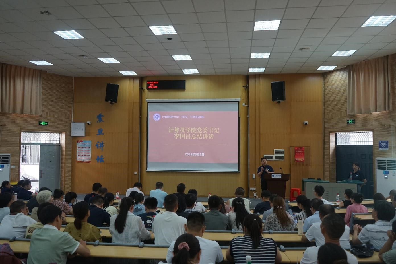 9月5日,2025级本科生开学典礼在南望山校区隆重举行。张洪艳院长深情寄语新生珍惜时光、树立理想,在计算机领域勇创新、勤奋斗;李国昌书记为新生班主任颁发聘书;张洪艳院长为新生代表佩戴校徽,象征学子正式加入计科大家庭。班主任代表甄慧翔承诺做学生的引路人,老生代表冯宇欣分享成长经验,新生代表魏鸿铭誓言不负期望。校友金敏鼓舞新生保持热爱、直面挑战。典礼在《勘探队员之歌》合唱中落幕,为新生注入信念与力量。