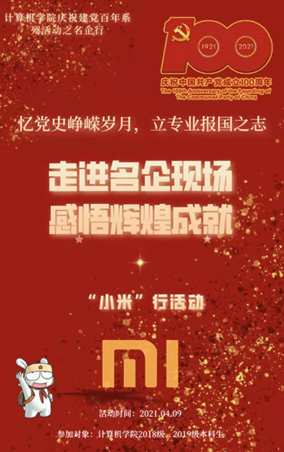 (通讯员:周恒,摄影:方知雨)4月9日,计算机学院组织了本院35名同学前往小米科技(武汉)有限公司参观学习,此次活动以共青团武汉市委牵头组织开展的“新青年下乡”活动为契机,旨在进一步加强新形势下大学生思想政治工作,将青年学生的思政教育、成长成才同国家发展相结合,引导学生在基层感受中国共产党领导下的国家发展活力,激发学生爱党报国热情。本次活动由学院学生党建办公室主任王太茂带队。