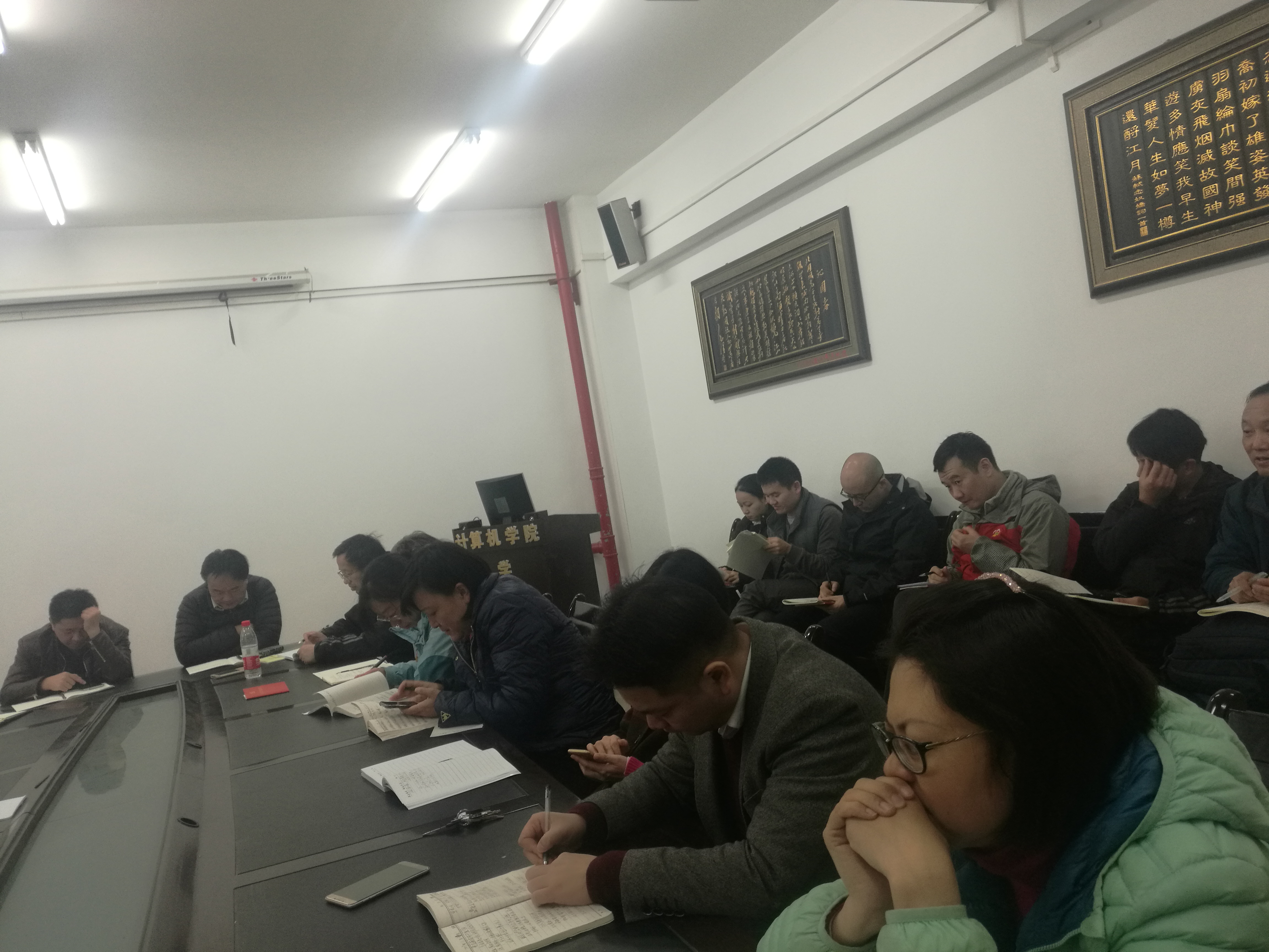 (通讯员:石剑峰)11月20日下午2点30分,今日看料 于北一楼122会议室召开党委中心组理论学习扩大会议,就统战工作的相关文件、政策进行学习,同时对学院下一步的统战工作进行部署。此次会议由院党委组织,党委书记吕军同志主持,学院党委委员、院领导、各三级部门负责人、各支部书记及支部委员参加。